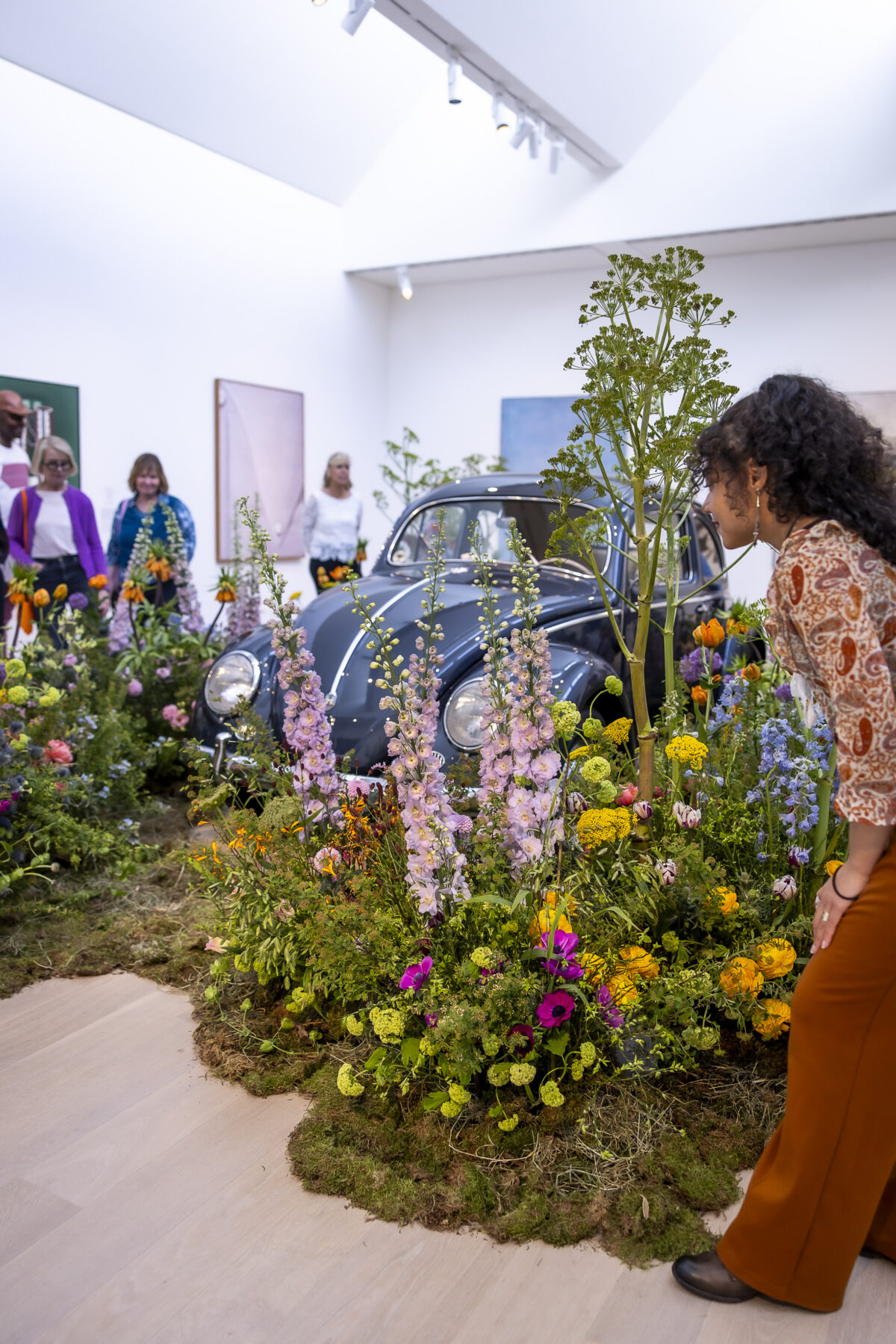 Rund 30 florale Kreationen sind neben den im Rundgang ausgestellten Objekten – naturgemäß nur für kurze Zeit – zu sehen und schaffen sowohl visuell als auch olfaktorisch besondere Sinneseindrücke. Acht renommierte Florist*innen folgen der Einladung des Kunstpalastes, sich mit der Sammlung auseinanderzusetzen und Interpretationen zu entwickeln, die sich auf einzelne Werke oder ganze Räume des Rundgangs beziehen.