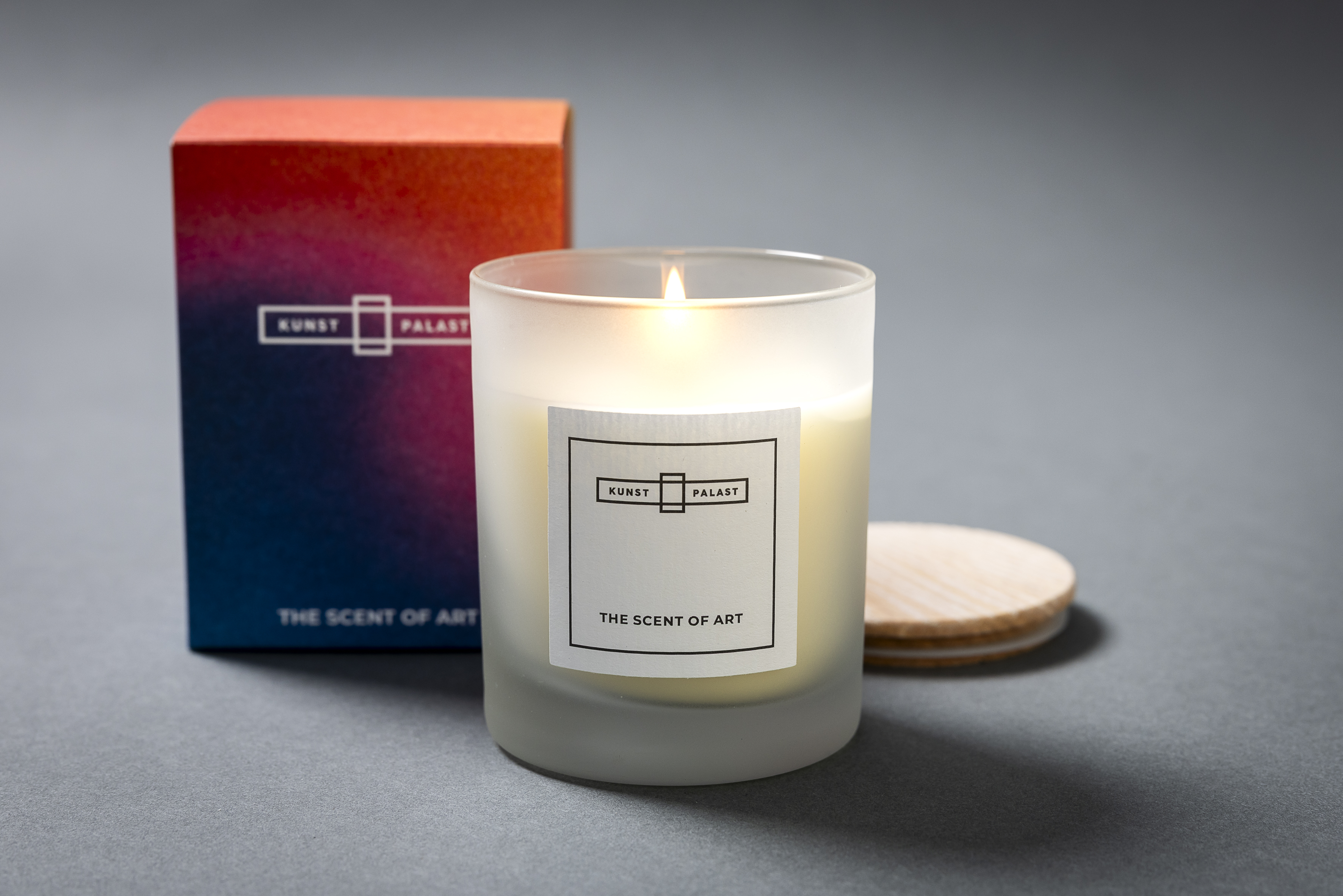 Like a logo, scent can also embody the identity of an institution, create sensory connections with the content, arouse emotions or serve as an invisible brand signature. To commemorate the exhibition, curator Robert Müller-Grünow has composed a fragrance for the Kunstpalast, whose ingredients embody the museum’s openness, experimental spirit and dynamism. The Kunstpalast scented candle brings this atmosphere into your own four walls – now available exclusively at the museum shop for 49 €